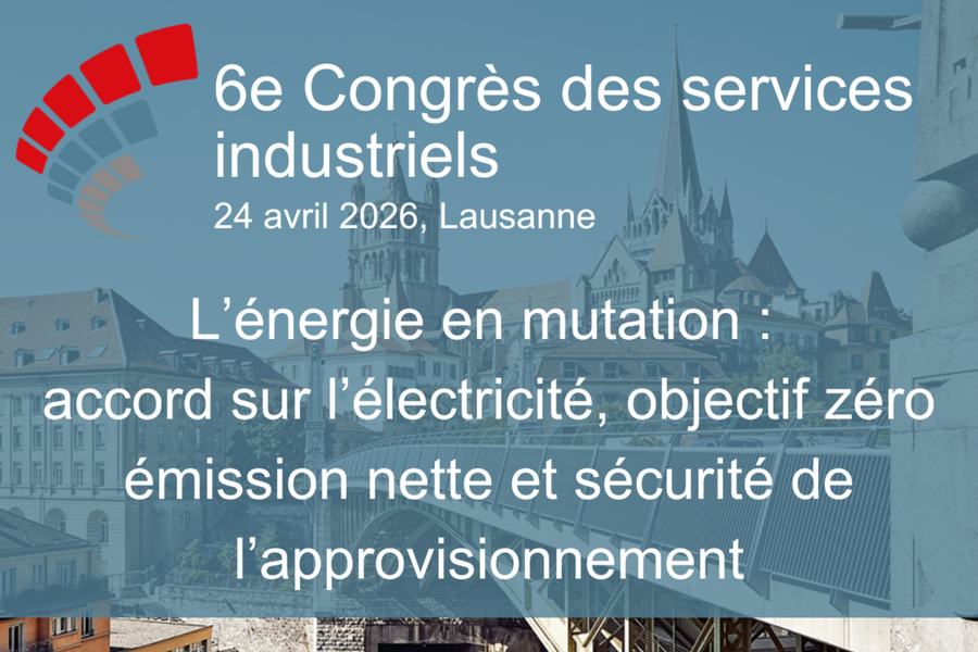 6e congrès des services industriels à Lausanne: Réservez la date du vendredi 24 avril 2026 et venez discuter de l'avenir de l'approvisionnement énergétique suisse avec des experts de premier plan issus des secteurs de l'industrie, de la politique, de l'économie et des sciences.